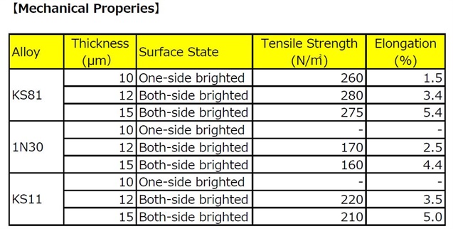 日本東洋雙面光高強度超薄箔材(10um~15um)。